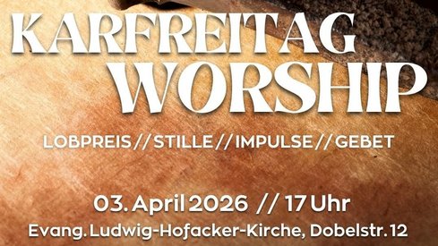 Herzliche Einladung zum Karfreitag-Worship am 03.04.26 um 17 Uhr in der Ludwig-Hofacker-Kirche.